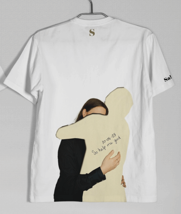 Light T-shirt with the lyric God is a woman, and she looks like you on the front breast. Salesmen S logo and the cover of So Help Me God on the back. Looks good online, looks great in real life.